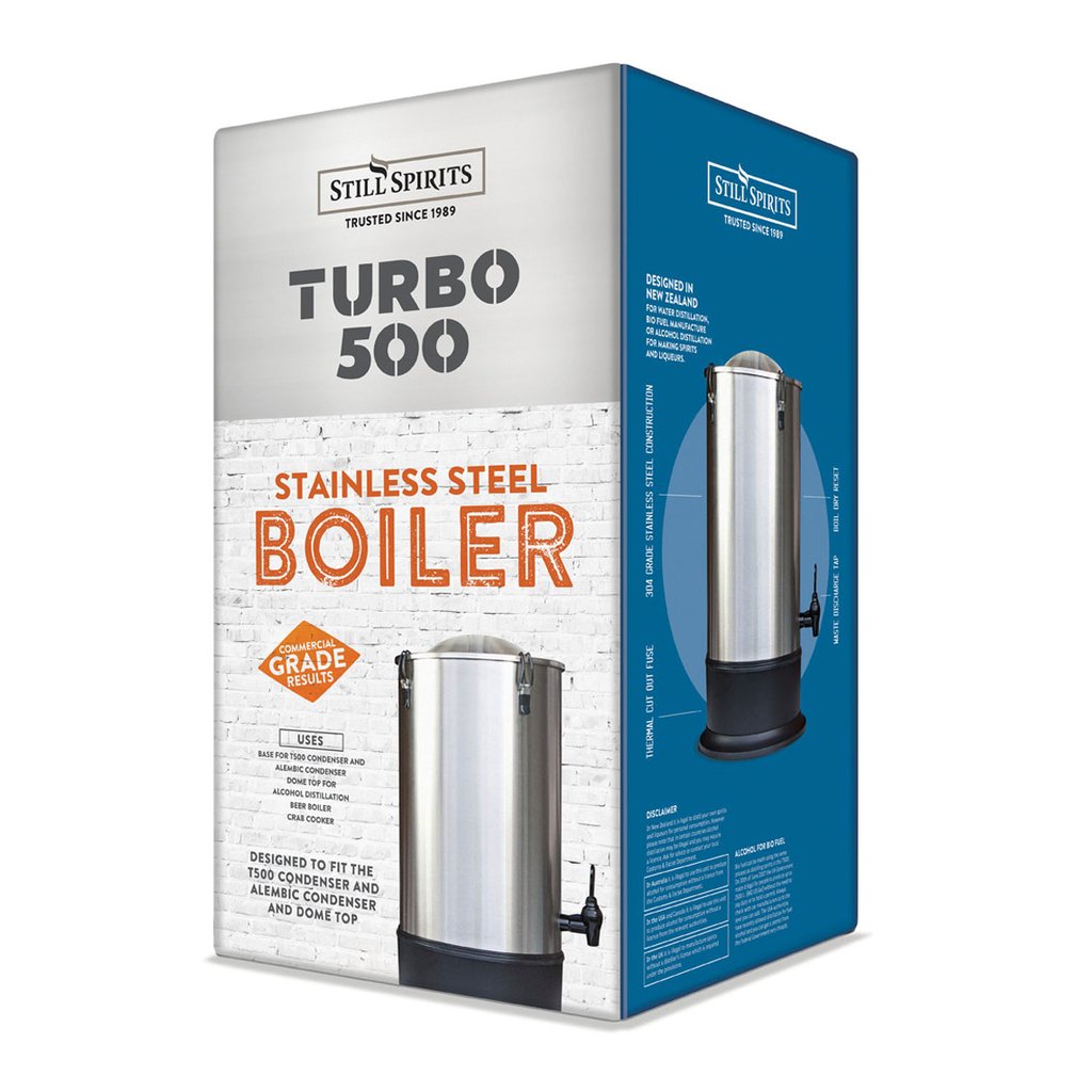 The Still Spirits Turbo 500 is the best on the market, with the simplest ease of use. The Turbo 500 produces the best quality distilled product than any on the retail market. With a yield of 95% and a quality output of 93-95%, it is not only user friendly, it is one of the highest quality producing units on the market. The Turbo 500 T-500 has brought the industry significantly forward and is destroying the old stereotypes of distillation. Of the new features that have really brought the unit forward in innovation, the passive controlled ceiling temperatures is the shining light. It prevents the Turbo 500 T-500 from collecting substances over the programmed set temperature which optimizes the quality of the final product. It has a new designed heating enclosed element to prevent burning of the distillate and even boiling process. It has also increased the level of stainless steel and reduced the presence to a minimal of copper, reducing the effects of copper oxide whilst keeping enough contact to remove unwanted sulfurs during the distillation process.